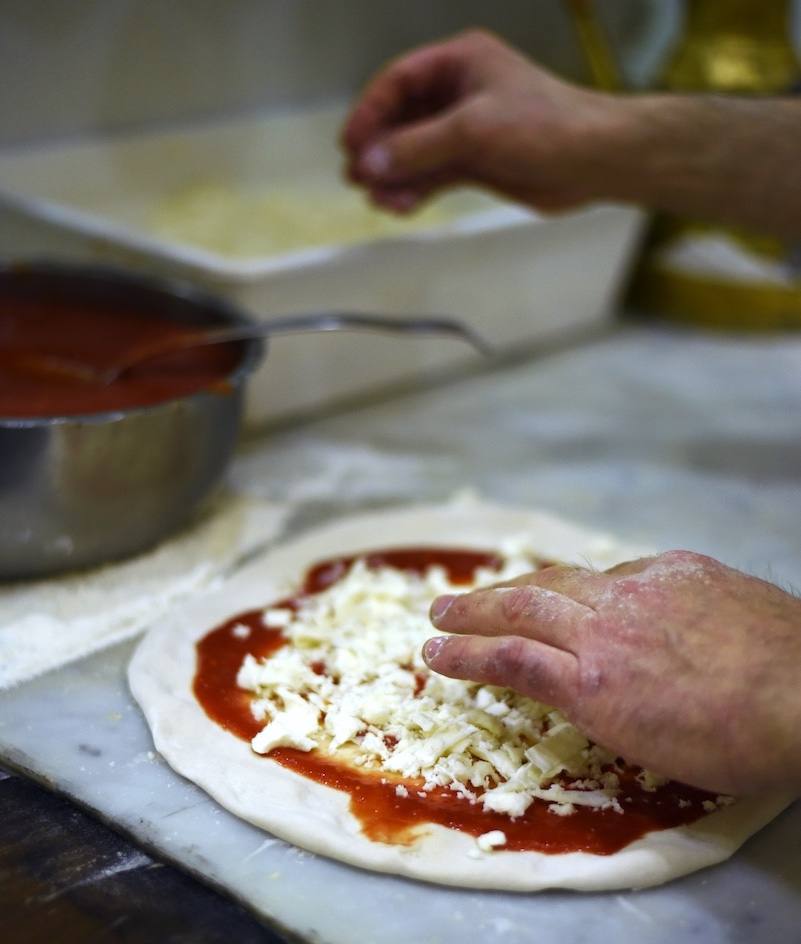 The preparation of Neapolitan pizza at L’Antica Pizzeria da Michele follows strict guidelines to preserve its authenticity.